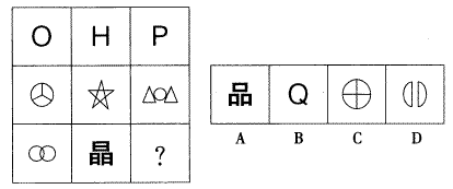 【答案】A。专家解析:每行都有两个图形的封闭区域数之和等于第三个图形的封闭区域数,只有A项符合。