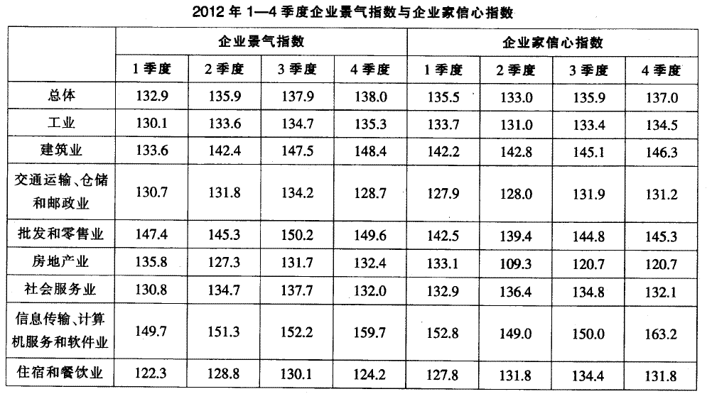 2012ÄêµÚËļ¾¶ÈÖУ¬ÏÂÁÐÑ¡ÏîÖÐÆóÒµ¾°ÆøÖ¸Êý×îó{µÄÐÐÒµÊÇ_____¡£