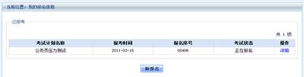 6、 完成报考或者修改报考操作后,页面显示人员已报考的考试信息。