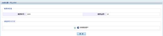 2、 单击“支付”按钮,显示支付页面,如下图。勾选支付方式,单击“支付”按钮,完成支付操作(支付的流程参见标题1.2.3.1网上支付说明)。