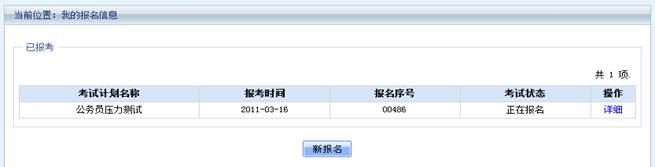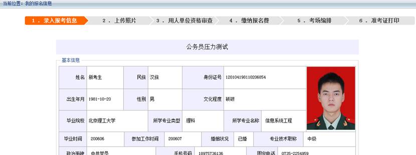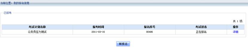 1、 单击【我的报名信息】,打开我的报名信息页面,如下图: