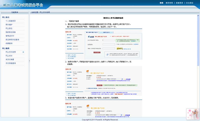 功能描述:用于向考生说明郴州市人事考试缴费流程。