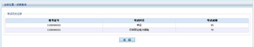 2、 单击列表中“查询成绩”按钮,显示该考生的考试成绩信息。如下图: