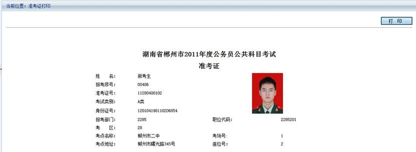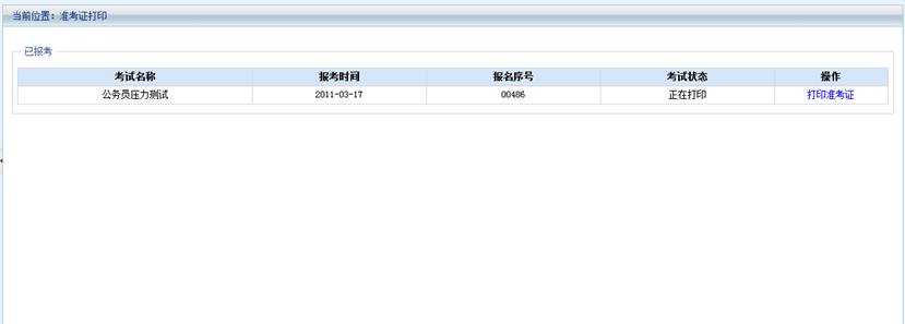 1、 单击【准考证打印】,打开准考证打印页面,如下图: