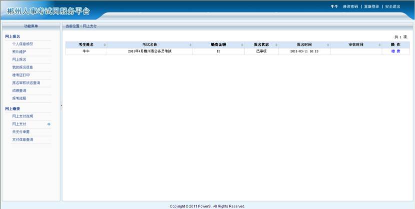 1、 单击【网上支付】,打开网上支付页面,如下图: