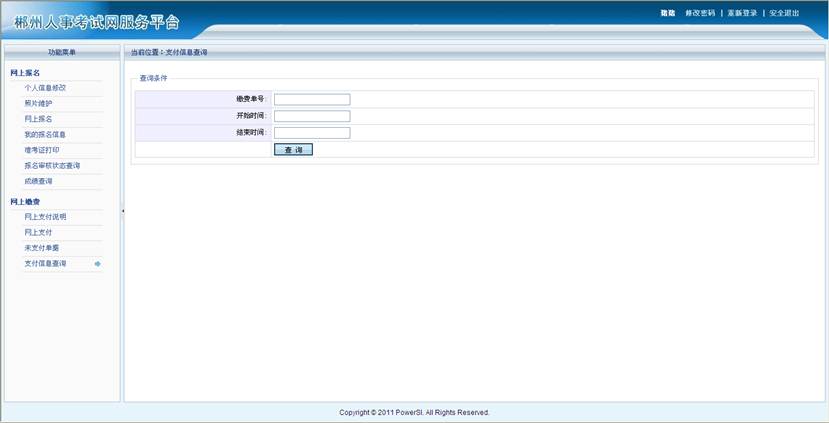 1、 单击【支付信息查询】,打开支付信息查询页面。如下图: