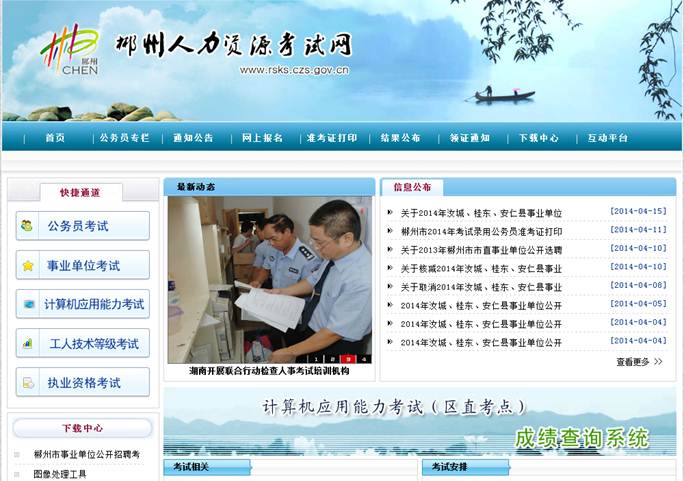 再点击左下角即可链接到郴州人事考试网,如下图所示: