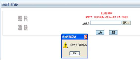 3、 选择好后,单击“上传”按钮,如果图片符合要求,则提示保存成功。