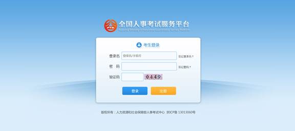 报考人员登录全国人事考试服务平台(网址:http://zp.cpta.com.cn/gwyexam?examid=dEdldG),进入报名登录界面,如下图所示: