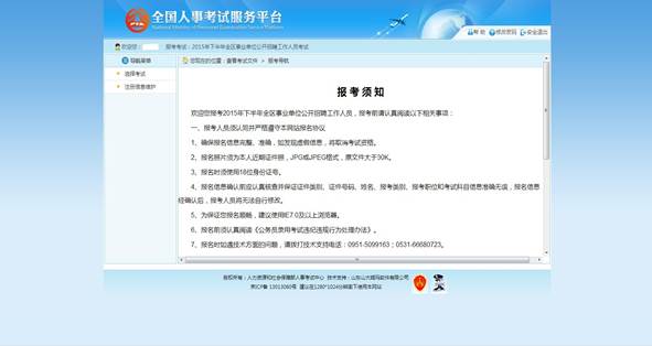 考生登录系统后,上传照片完成后进入报考须知阅读页面,如下图所示: