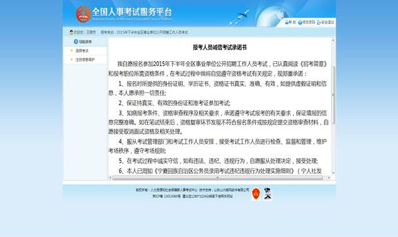 阅读并点击“接受”按钮, 进入查看考生承诺书的页面,如下图所示:
