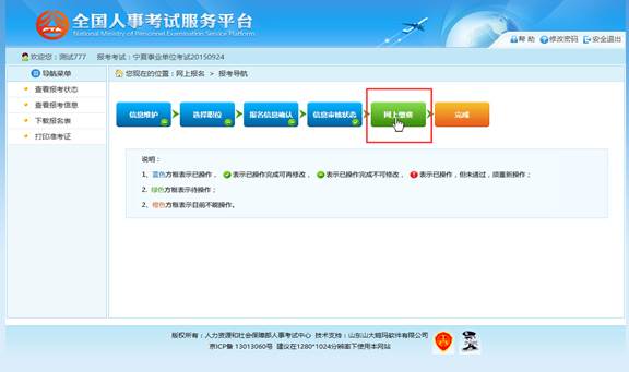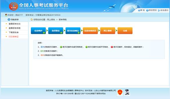 通过点击“确认”按钮,提示确认成功后跳转到报考流程页面,如下图所示: