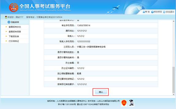 通过点击“报名信息确认”按钮后,跳转到报名信息确认页面,如下图所示: