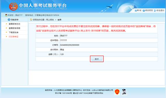 考生可以根据自己的情况选择支付的网关,选择完成后点击“生成订单”按钮,可以生成订单,如下图所示: