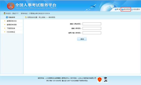 在该界面可以对考生的登录密码进行修改。