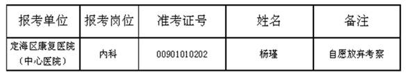 2015年舟山市定海区第二批公开招聘部分卫生专业技术人员自愿放弃考察人员名单