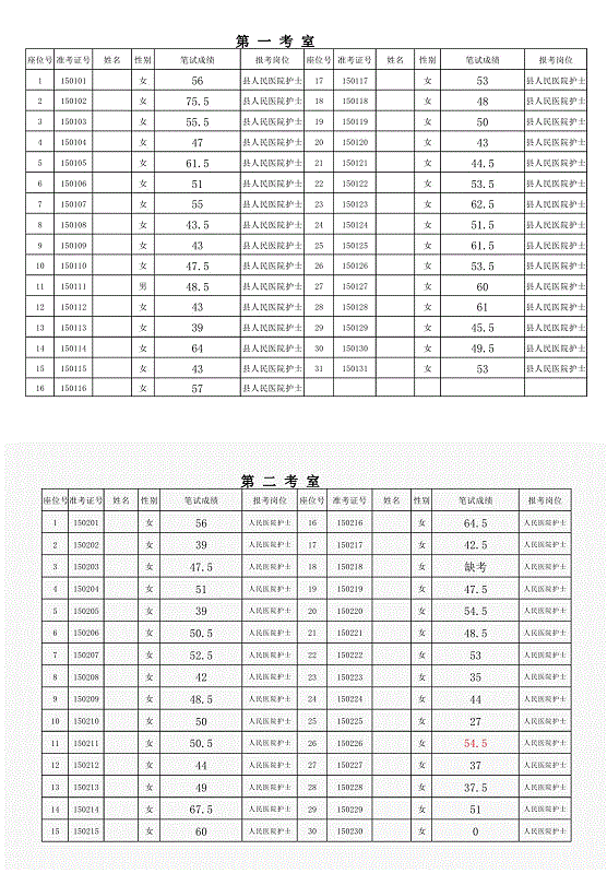 2015年09月湖南通道县卫生部门招考笔试成绩公告