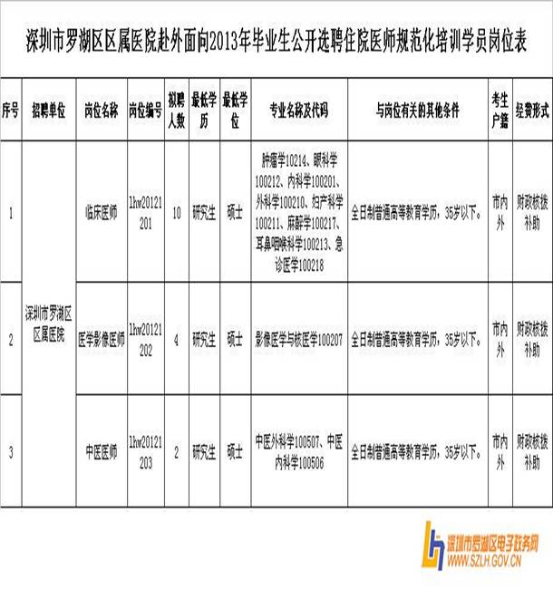 深圳市罗湖区区属医院赴外面向2013年毕业生公开选聘