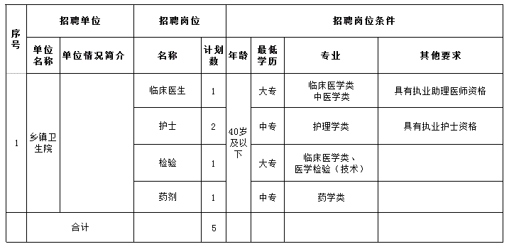 共招聘工作人员5名。具体岗位及数量详见附件。