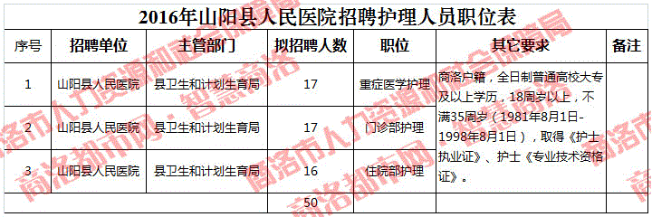 原标题:2016年山阳县人民医院招聘护理人员公告