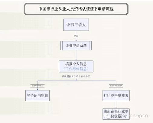 在线填写详细个人信息,并对相关事项做出法律声明。非中国银行业协会会员单位的银行业从业人员须按系统提示打印证书审核申请表,按照审核流程完成证书申请。