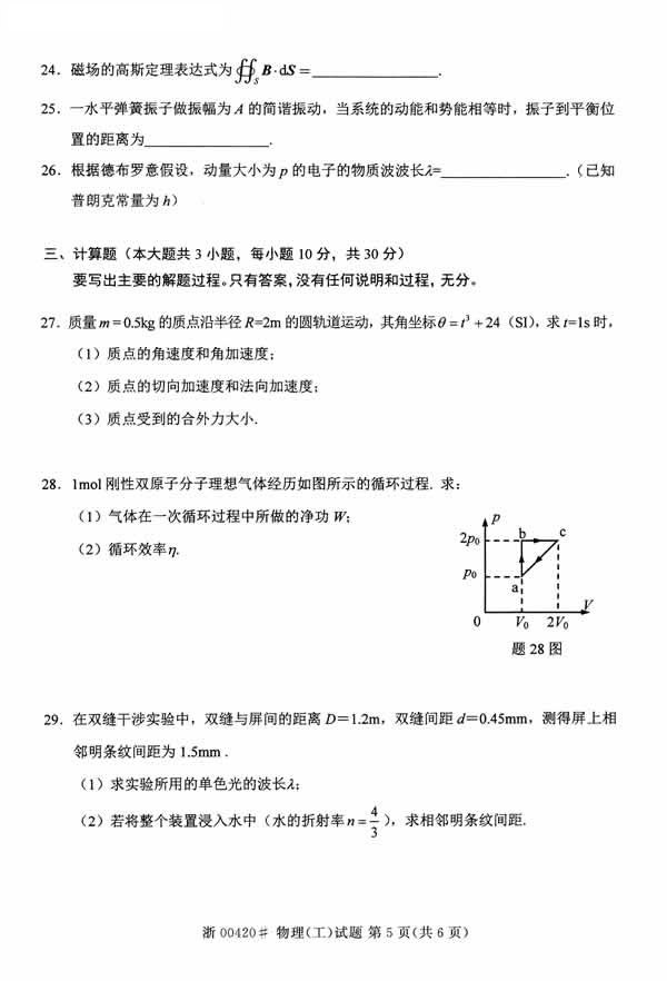 全国2014年10月自学考试《物理(工)》真题(word下载版)(二)