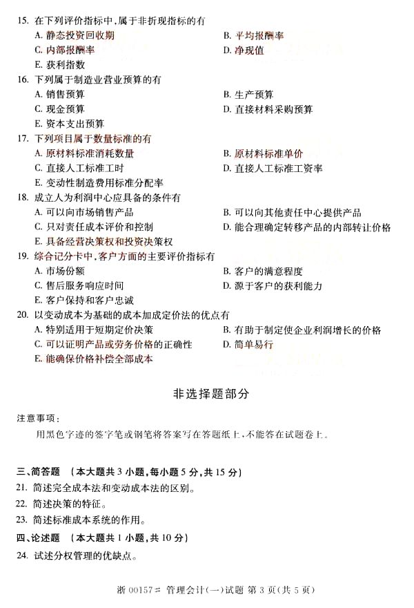 全国2014年10月自学考试《管理会计(一)》真题(完整word版)(五)