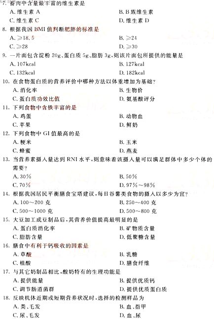 全国2014年10月自学考试《营养学》真题(完整word版)(四)